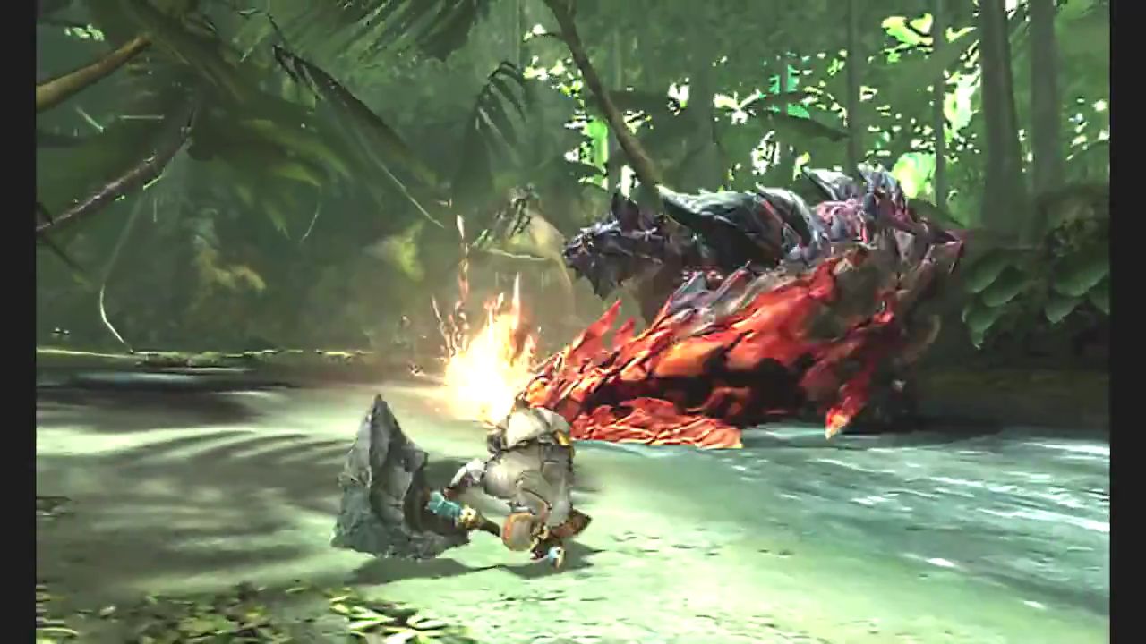タワミツネ(泡狐竜)。このシーン、完全にジンオウガ意識してますね?