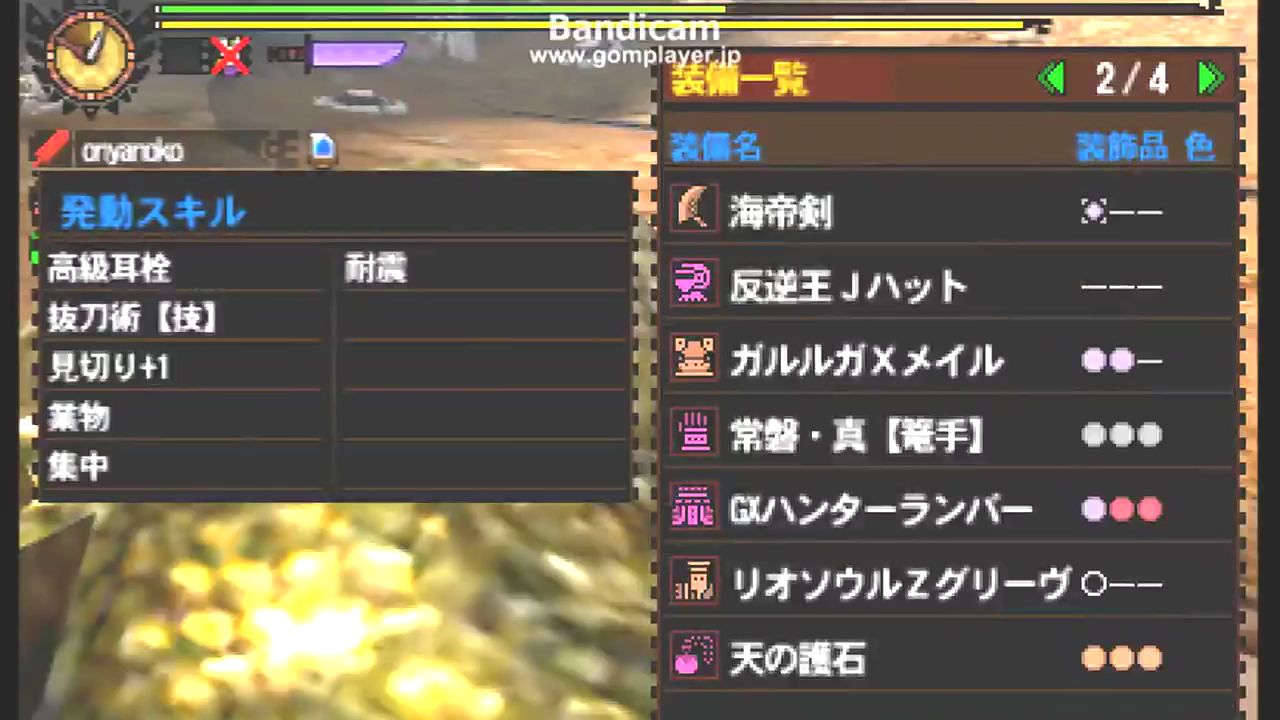 - 大剣の三種(抜刀技、集中、スムラ)。+見切り1はおまけ。